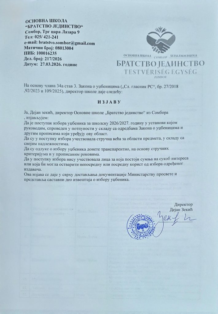 Osnovna škola "Bratstvo Jedinstvo" Sombor
