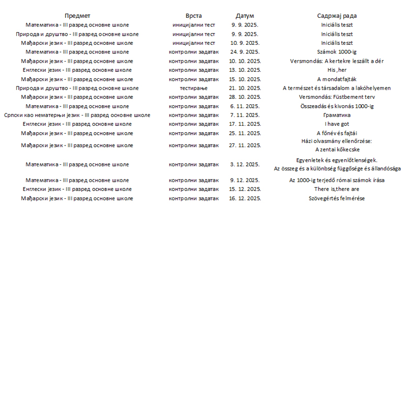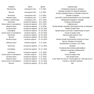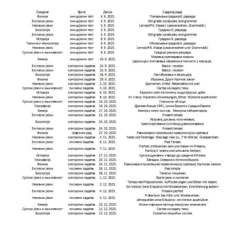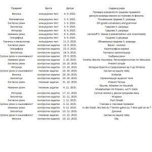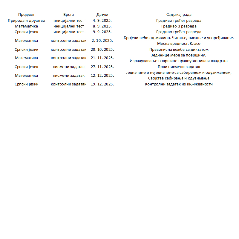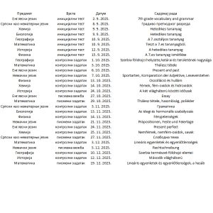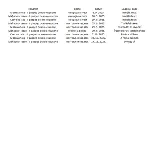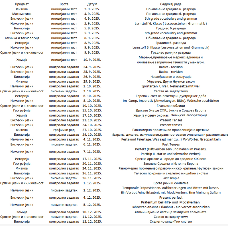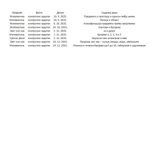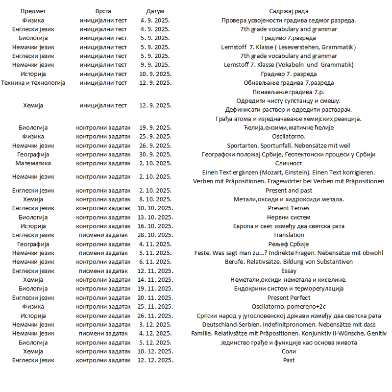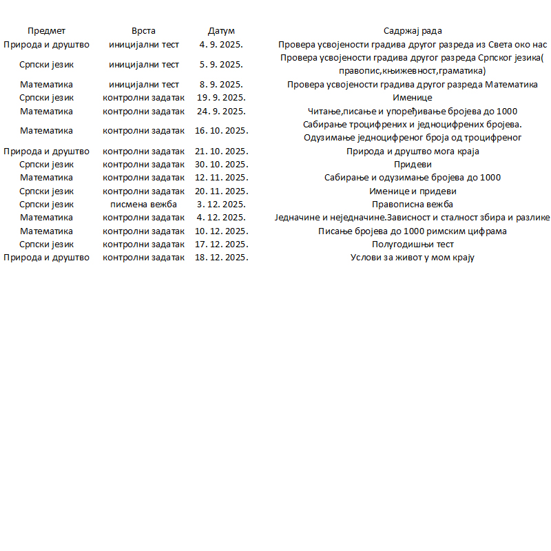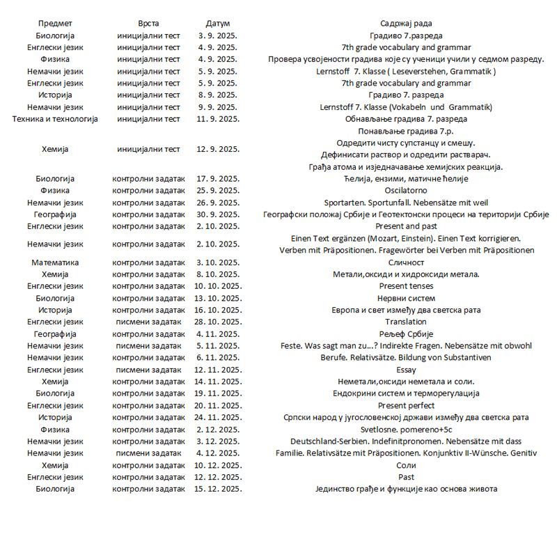 Dragi učenici, možete da pristupe rasporedu kontrolnih i pismenih provera za svoj razred preko kalendara u vidu događaja, ili pregledom tabela u vidu slika.