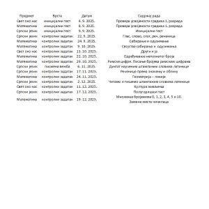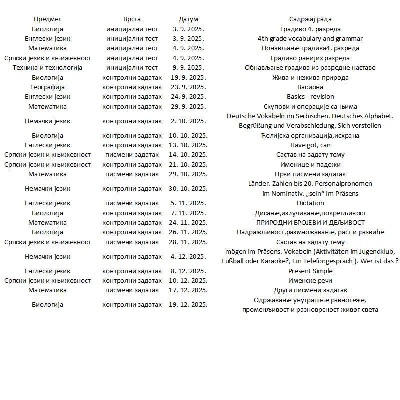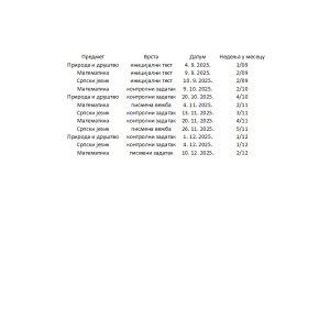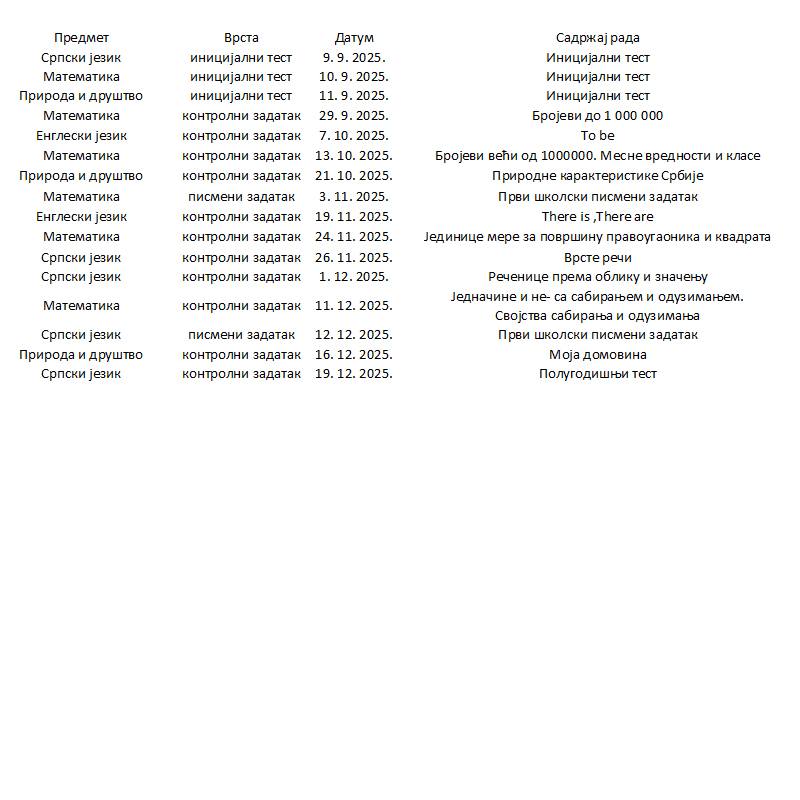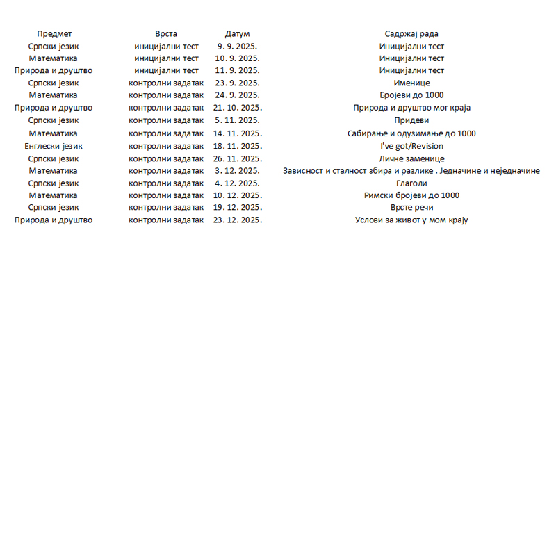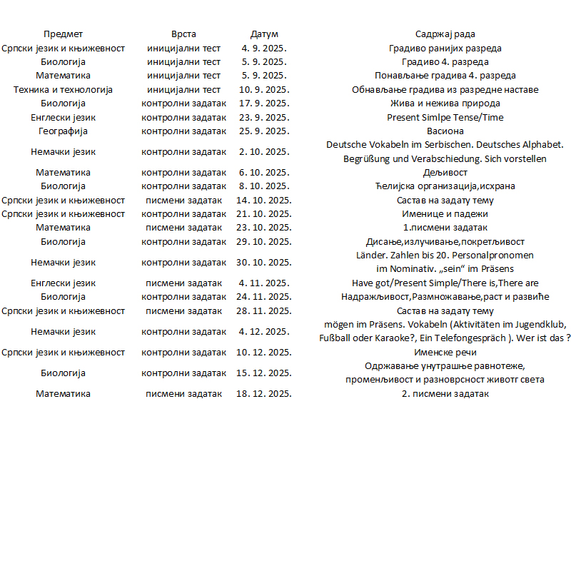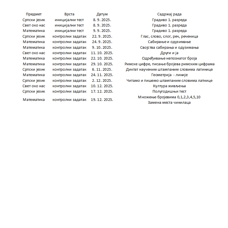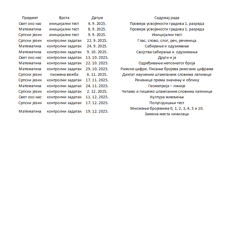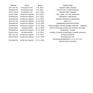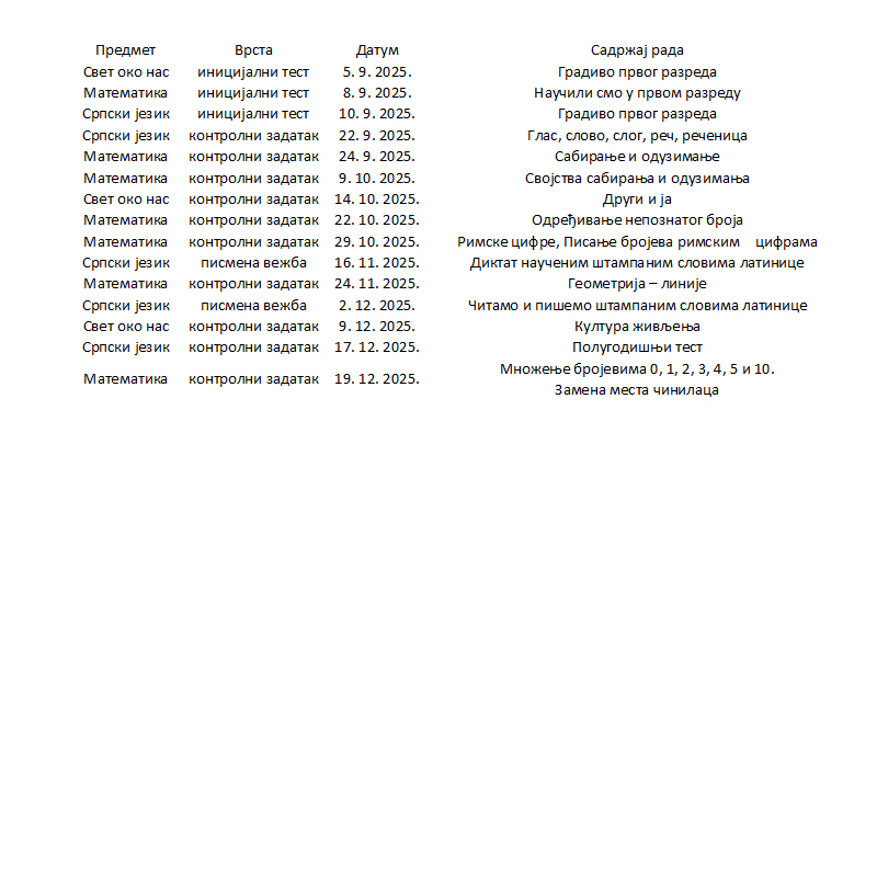 Napomena: Podaci na ovoj stranici su ažurirani za školsku 2025/2026 godinu (od I do IV razreda).