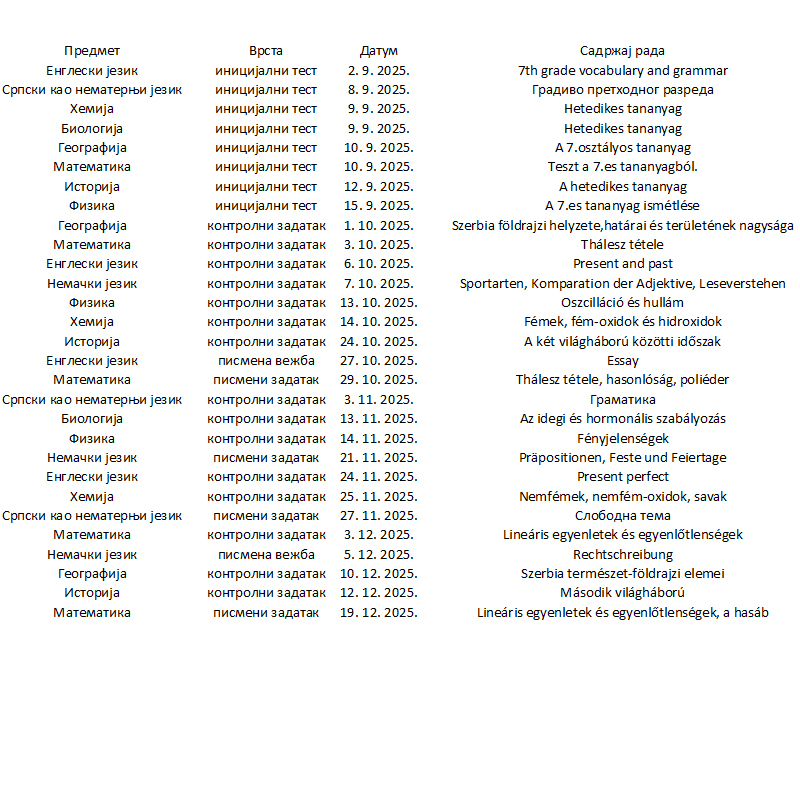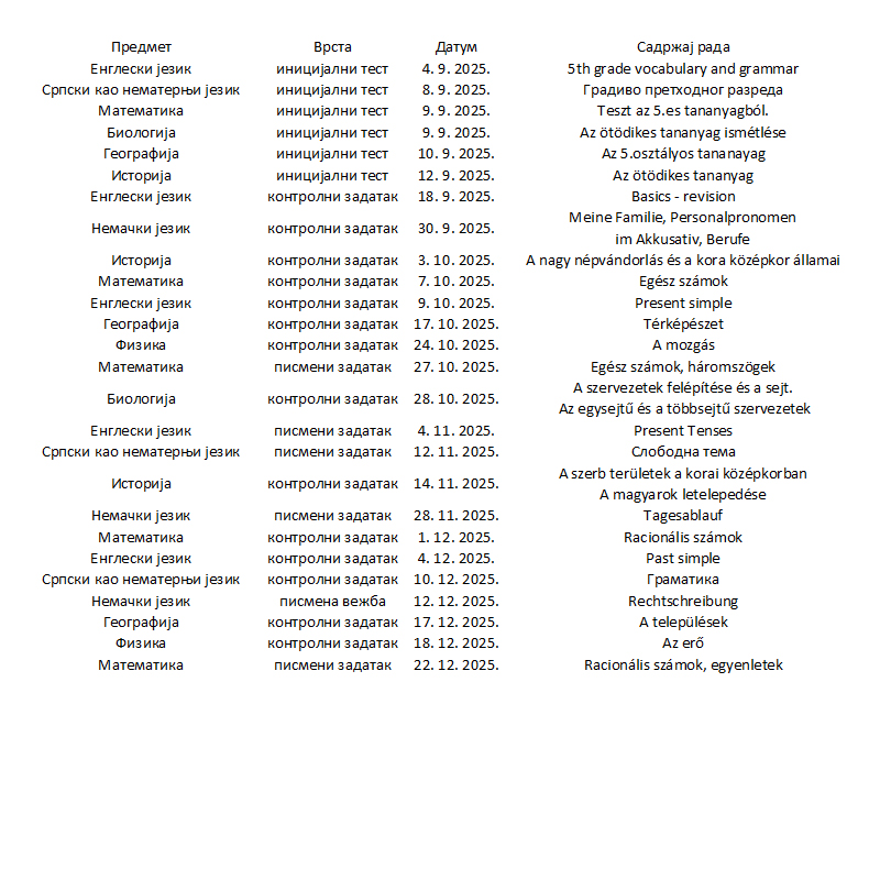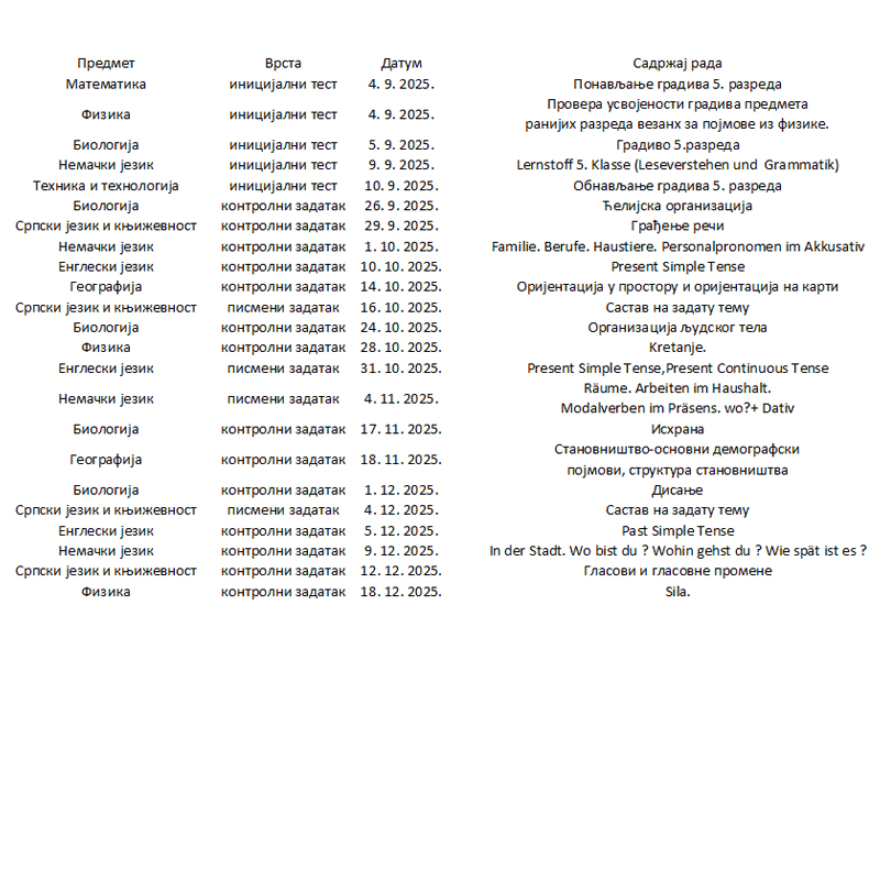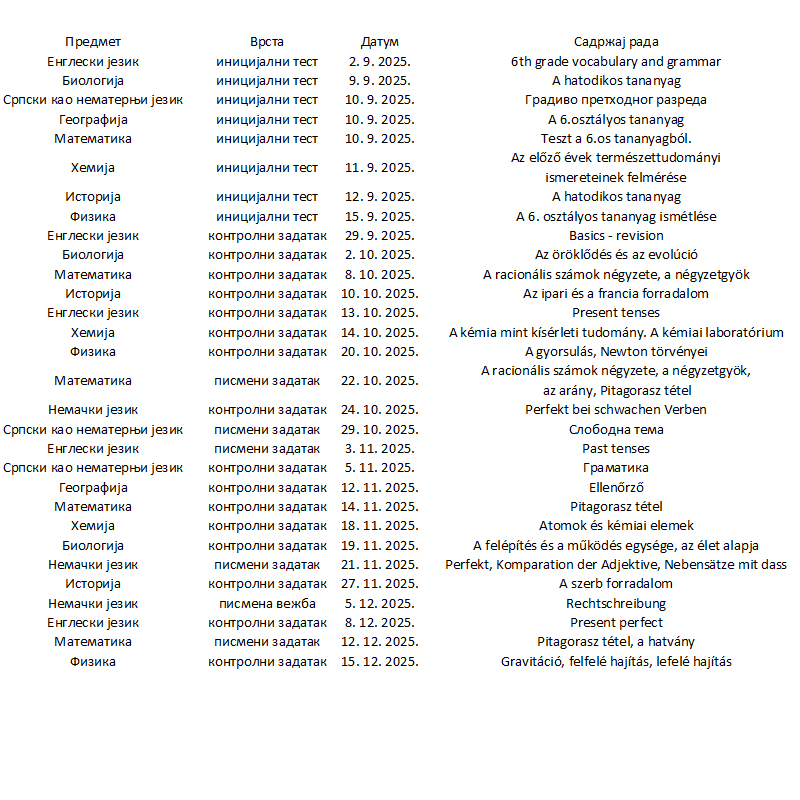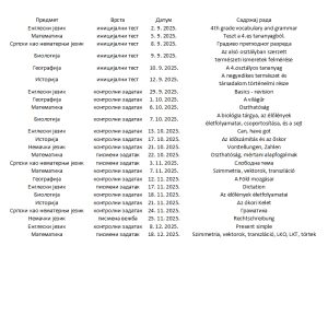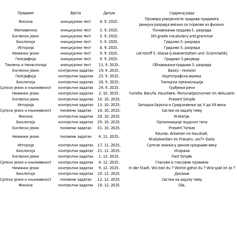 Kalendar škole je dinamičan i u njega ćemo, pored rasporeda kontrolnih i pismenih provera, unositi razne druge događaje koji će se odvijati u toku školske godine.