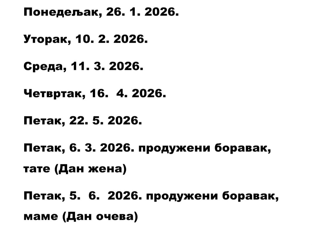 ПОНЕДЕЉАК УТОРАК СРЕДА ЧЕТВРТАК ПЕТАК